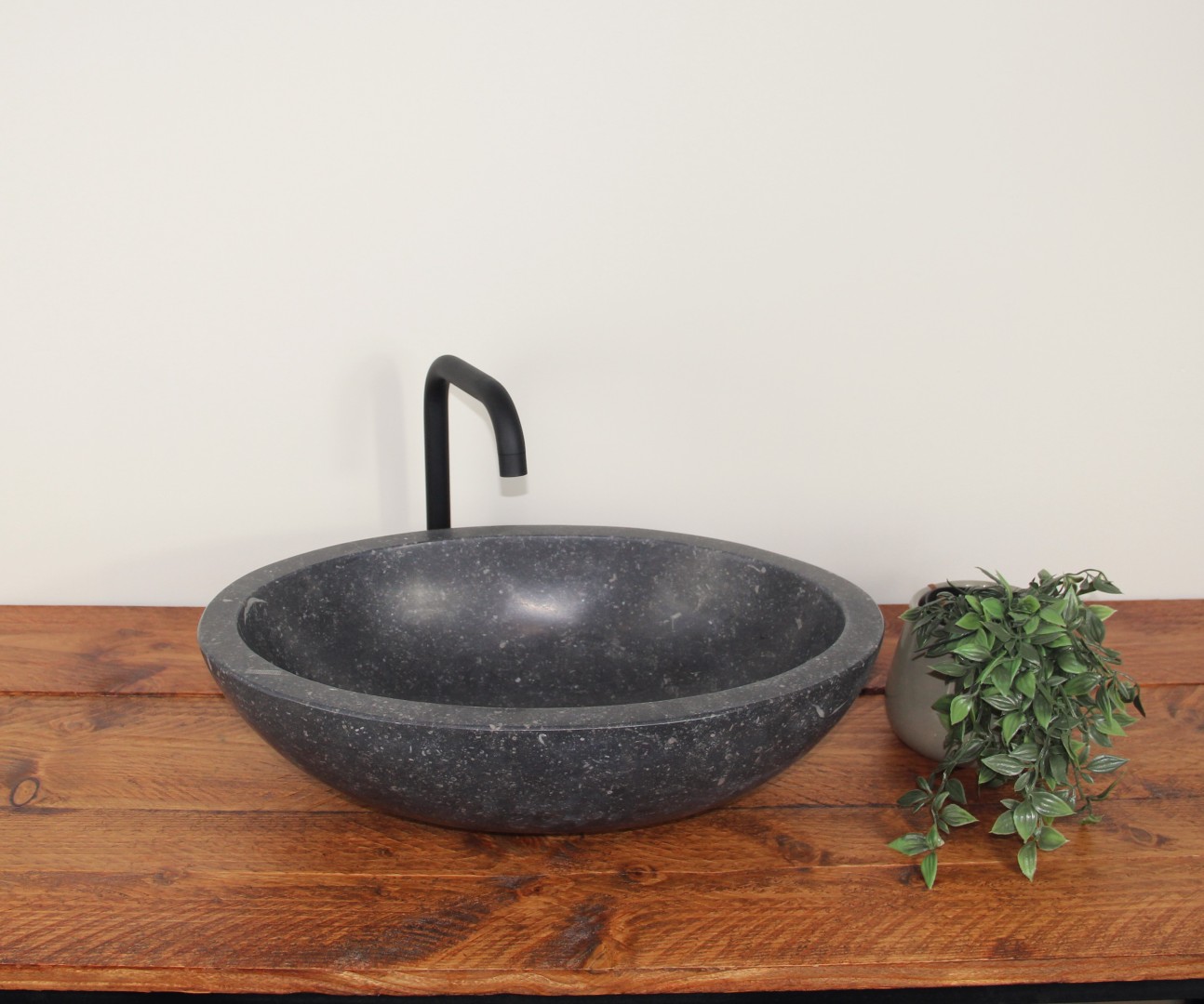 Mit einem zeitlosen Design aus dem 19. Jahrhundert und einem massiven Stück belgischen Blausteins, das von Hand bearbeitet wird, strahlt dieses einzigartige Waschbecken eine Klasse aus, die aus einem schönen Badezimmer ein einzigartiges Badezimmer macht. Durch echte Handwerkskunst entsteht in den Werkstätten des belgischen Steinmetzes jedes Mal ein einzigartiges Produkt, das der Ewigkeit trotzen kann. Belgischer Blaustein ist pflegeleicht, zeitlos und nahezu unverwüstlich.