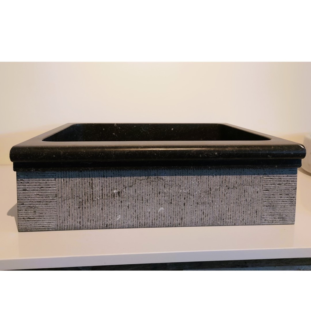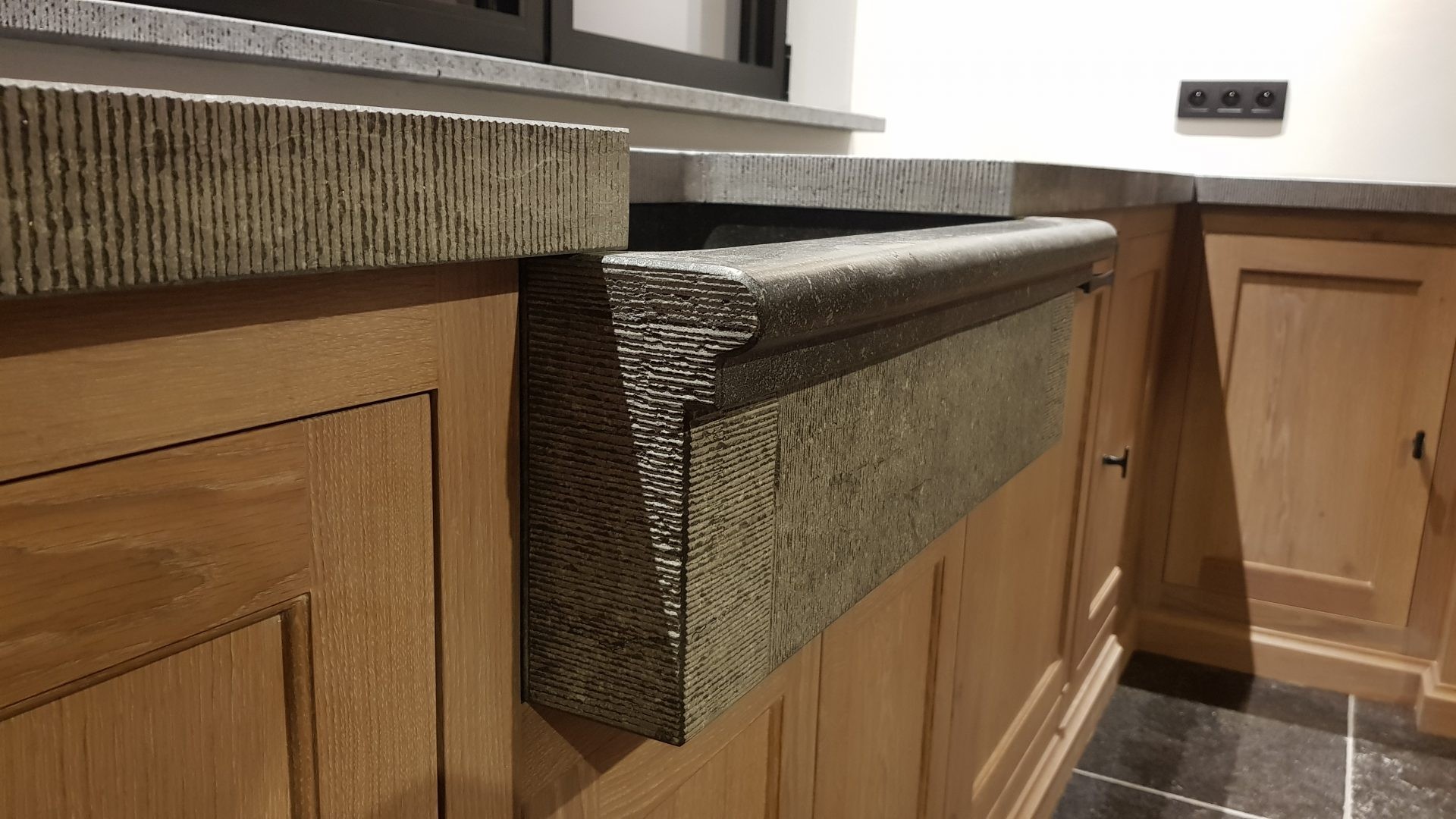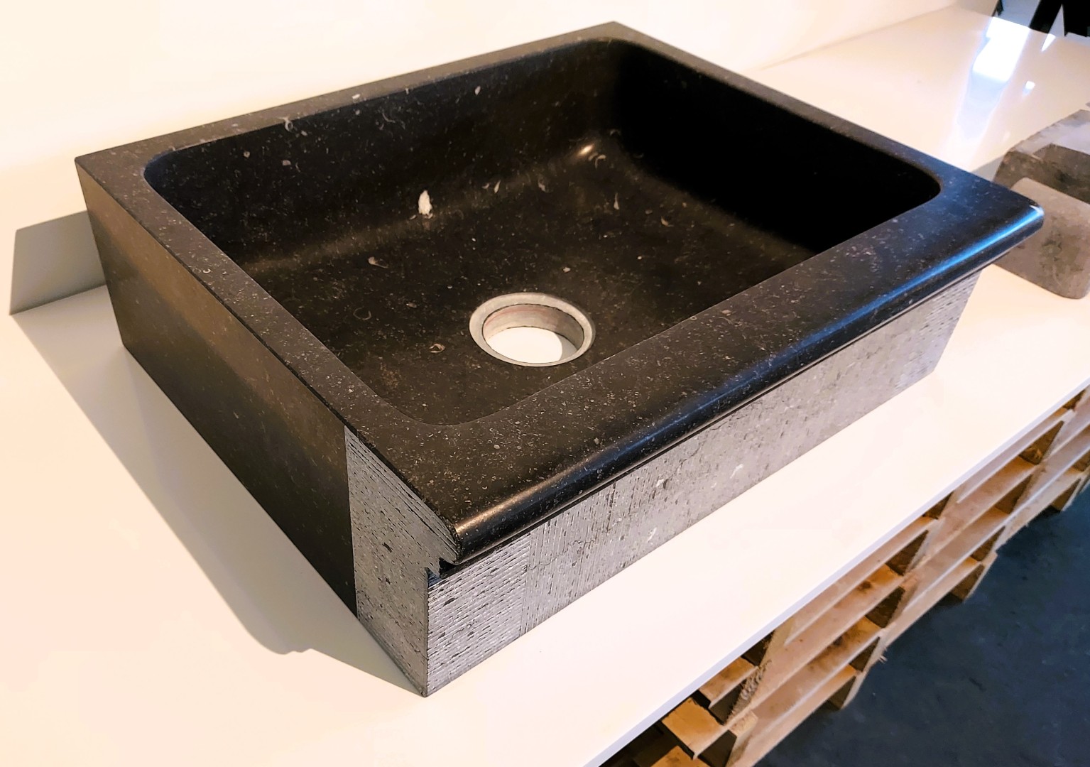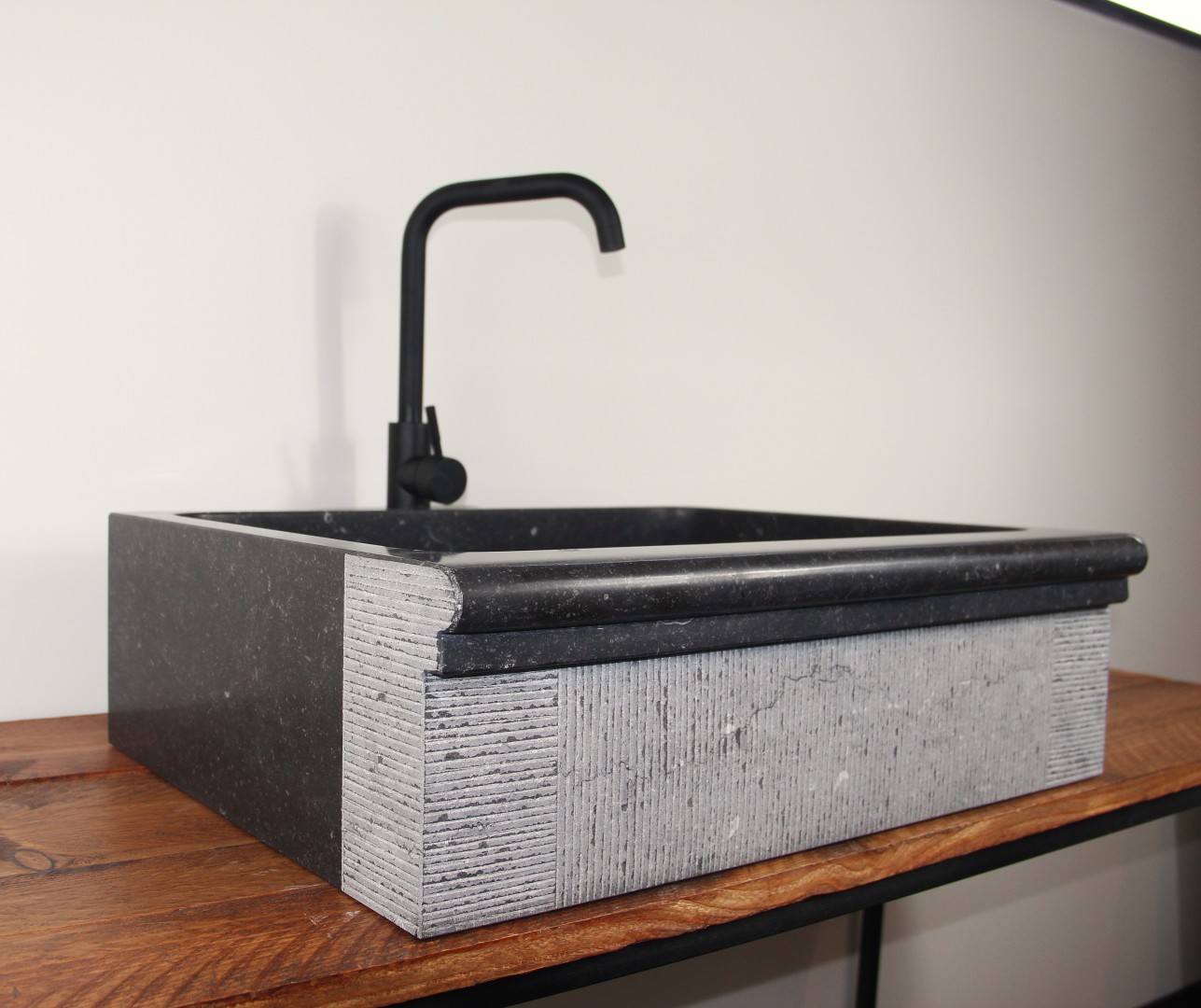 Mit einem zeitlosen Design aus dem 19. Jahrhundert und einem massiven Stück belgischen Blausteins, das von Hand bearbeitet wird, strahlt dieses einzigartige Spülbecken eine Klasse aus, die eine schöne Küche in eine einzigartige Küche verwandeln kann. Durch echte Handwerkskunst entsteht in den Werkstätten des belgischen Steinmetzes jedes Mal ein einzigartiges Produkt, das der Ewigkeit trotzen kann. Belgischer Blaustein ist pflegeleicht, zeitlos und nahezu unverwüstlich.
